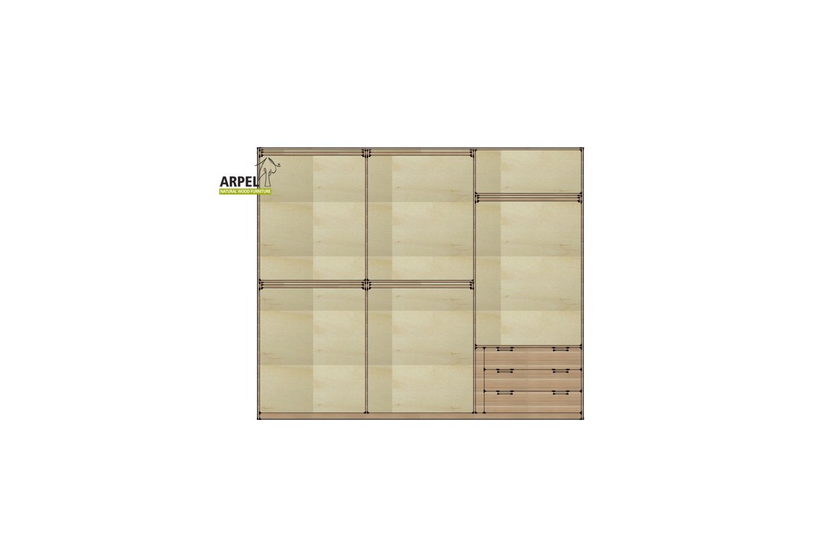 La cassettiera da interno è disponibile in legno naturale non trattato, verniciato trasparente oppure nella stessa colorazione del corpo esterno dell’armadio.