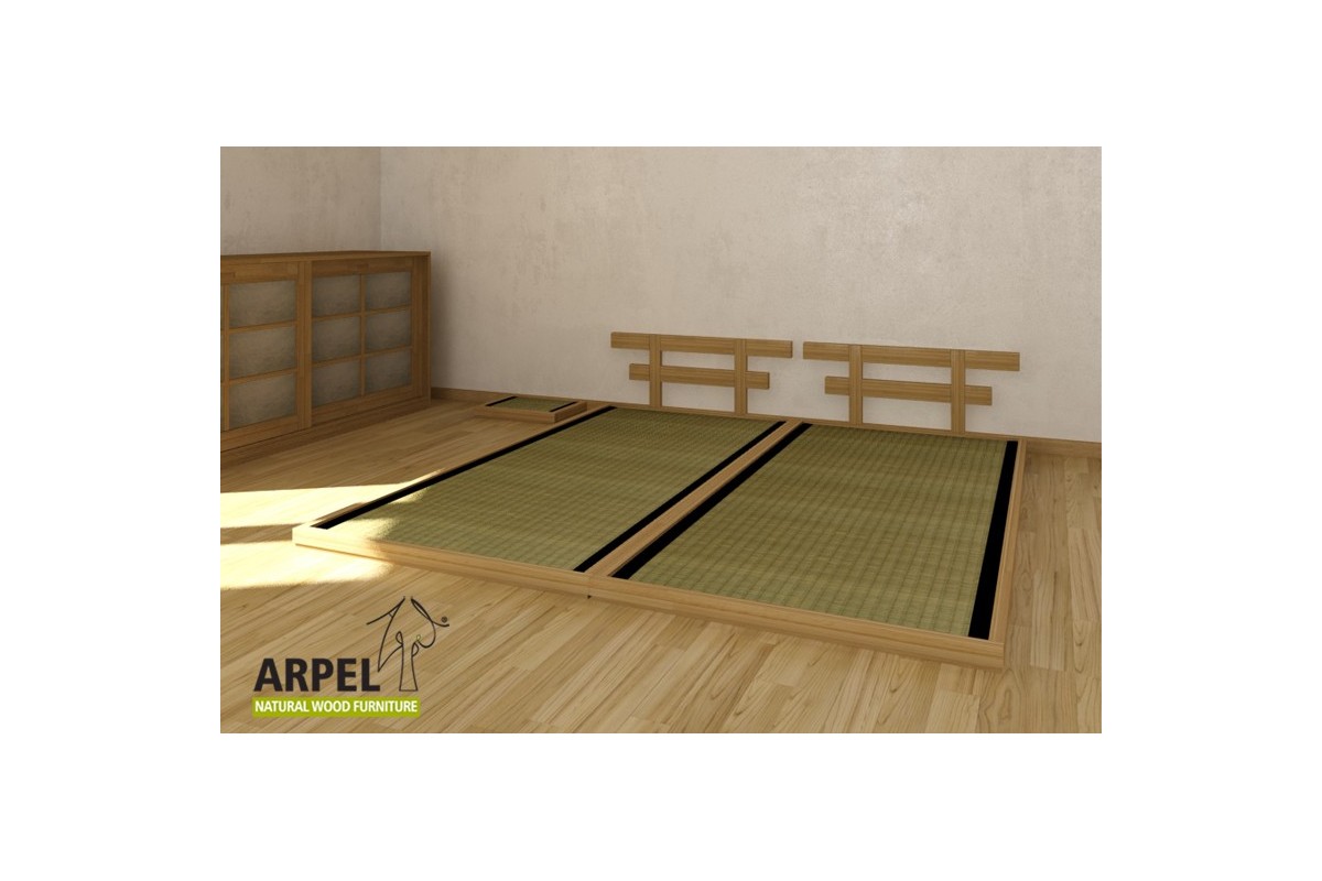 Per valorizzare l'intreccio del tatami, consigliamo di abbinare un materasso futon più stretto della struttura per lasciarne visibile una parte a destra e a sinistra. Il Letto Basso Haru con Tatami in versione matrimoniale fa parte della categoria letti giapponesi di Arpel.