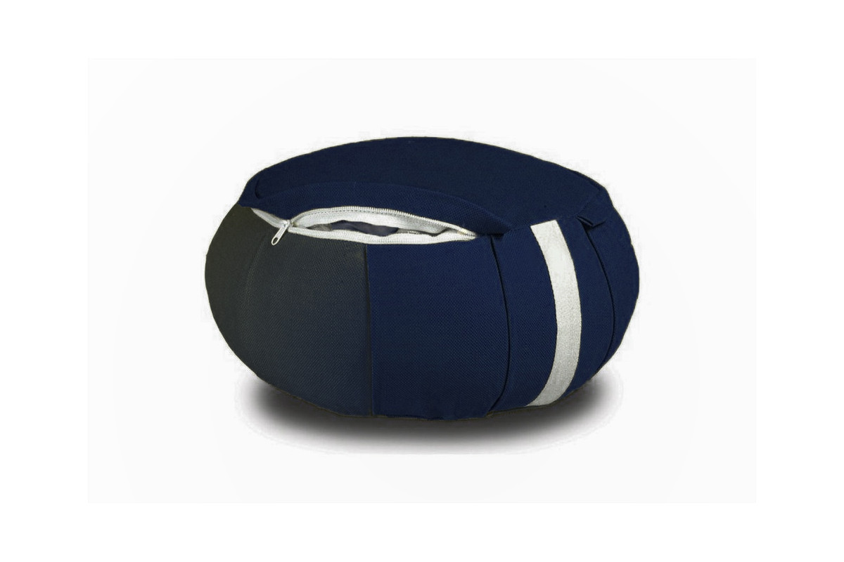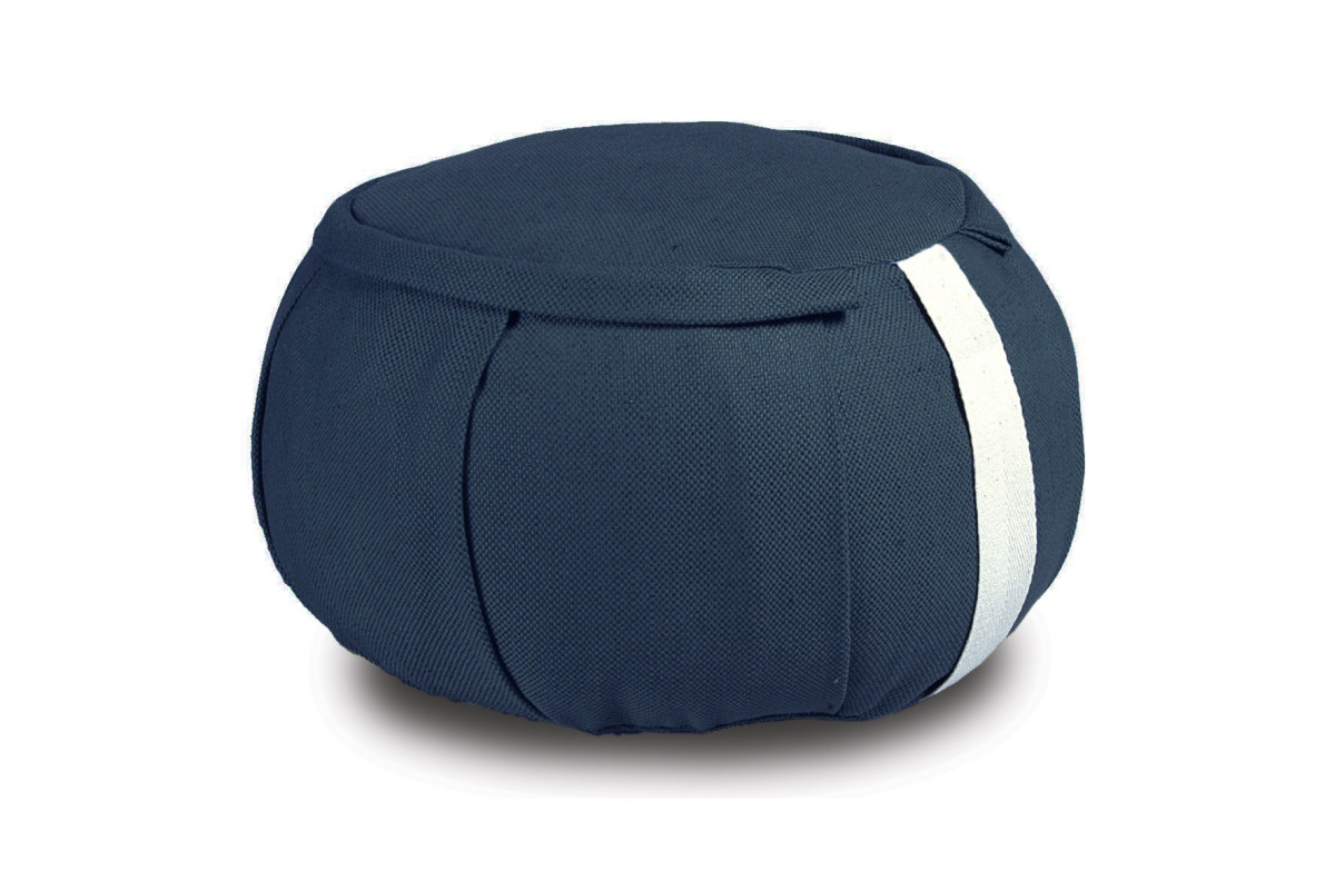 Dieses mitternachtsblaue Zafu hat einen Durchmesser von 40 cm und eine Höhe von 15 cm. Die Füllung besteht zu 100 % aus Kapokfasern, das Innenfutter aus reiner Baumwolle.