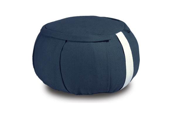 Cuscino Zafu blu notte, diametro 40 cm, ideale per gli esercizi di meditazione Zen. La fitta imbottitura in fibra di kapok garantisce un'ottima resistenza e una sensazione di comfort durante la meditazione. Il cusicno è dotato di una fodera sfoderabile in puro cotone.
