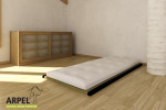 Als der Futon in den Westen kam, wurde er durch weitere Schichten sowie andere Materialien verändert und damit unseren Alltagsgewohnheiten und den verschiedenen Arten von Bett mit Lattenrost angepasst. Ein hochwertiger Futon wird auch heute aus reiner kardierter Baumwolle hergestellt, kann aber mit weiteren Materialien wie Naturlatex, Kokosfaser, Wolle und auch Memoryschaum aus Soja (Arpel-Neuheit) angereichert werden. Er ist also ein vollkommen natürliches und umweltfreundliches Produkt. Das bedeutet, dass er auch synthetik- und metallfrei ist, da er keine Sprungfedern hat, die die Schlafqualität negativ beeinflussen könnten.