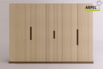 - creare ripiani di appoggio negli armadi lunghi anche 200 cm con spessori di pannelli da 19 o 26 mm senza che essi si incurvino. Oltre a questi spessori, Arpel utilizza pannelli di legno massello di spessore 32, 42 e 52 mm utilizzati per strutture letto, piani di tavoli, top di cucine, porte a battente e porte a scrigno in stile giapponese. Poniamo la vostra attenzione su un armadio a ponte realizzato su misura per un nostro cliente. Questo particolare armadio realizzato in legno di faggio, presenta un ripiano a sbalzo - cioè non sorretto da elementi verticali nella parte sottostante – lungo quanto la larghezza del letto stesso, circa 200 cm. Tutto ciò è stato possibile realizzarlo proprio grazie alle proprietà strutturali del legno di faggio. Inoltre, la parte superiore di questo armadio è stata dotata di ante scorrevoli giapponesi rivestite in carta di riso anch’esse realizzate in legno massello e che seppur pesando sopra l’elemento orizzontale hanno permesso di creare una chiusura funzionale contenitiva.